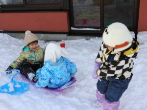 週末の大雪のおかげで、滑り台は埋まってしまったものの、