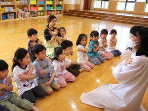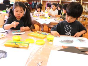 「ここが一番難しいところだよ」と先生が言うとしっかり目を見てお話を聞く子どもたち。