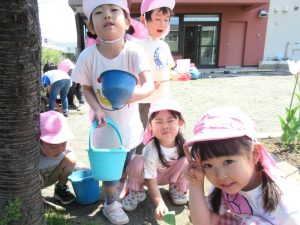 ぱんだ組は、園庭のプランターに植えるお花をみんなで話し合って決めていました。