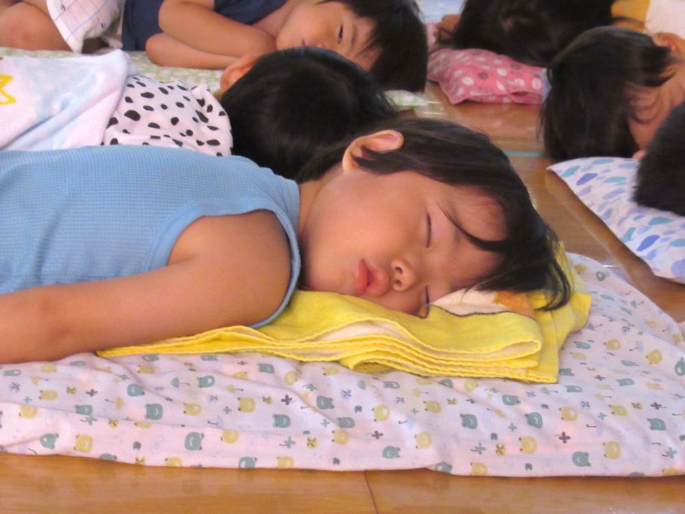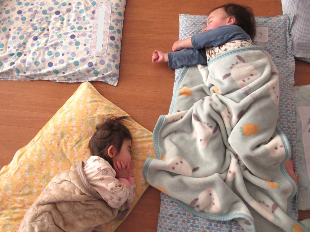2歳児さんを見ると、みんな時間になったらお布団に入って横になっていました。