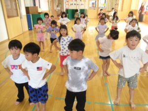 もちろんRPG体操です♪もうすっかり身体に染みついているようで、先生のお手本を見ずに踊れていましたよ♡