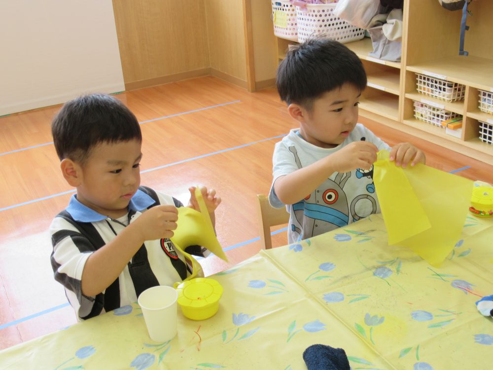 ①お花紙を破く