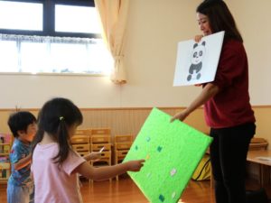 ぱんださんは、先生が来ると「ハロー!」と大きな声でご挨拶。