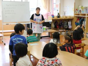 保育士、保育補助、調理員さんなど、全職員を対象とした園内研修です。