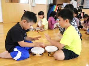ひまわり組さんは、色々な楽器に触れていましたよ♪