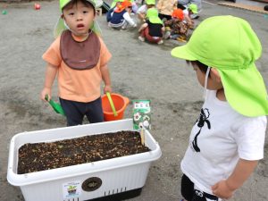 子どもたちは、小さな小さな芽を指さして、嬉しそうに観察していましたよ♪