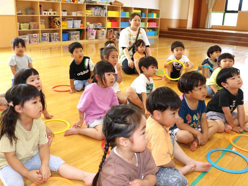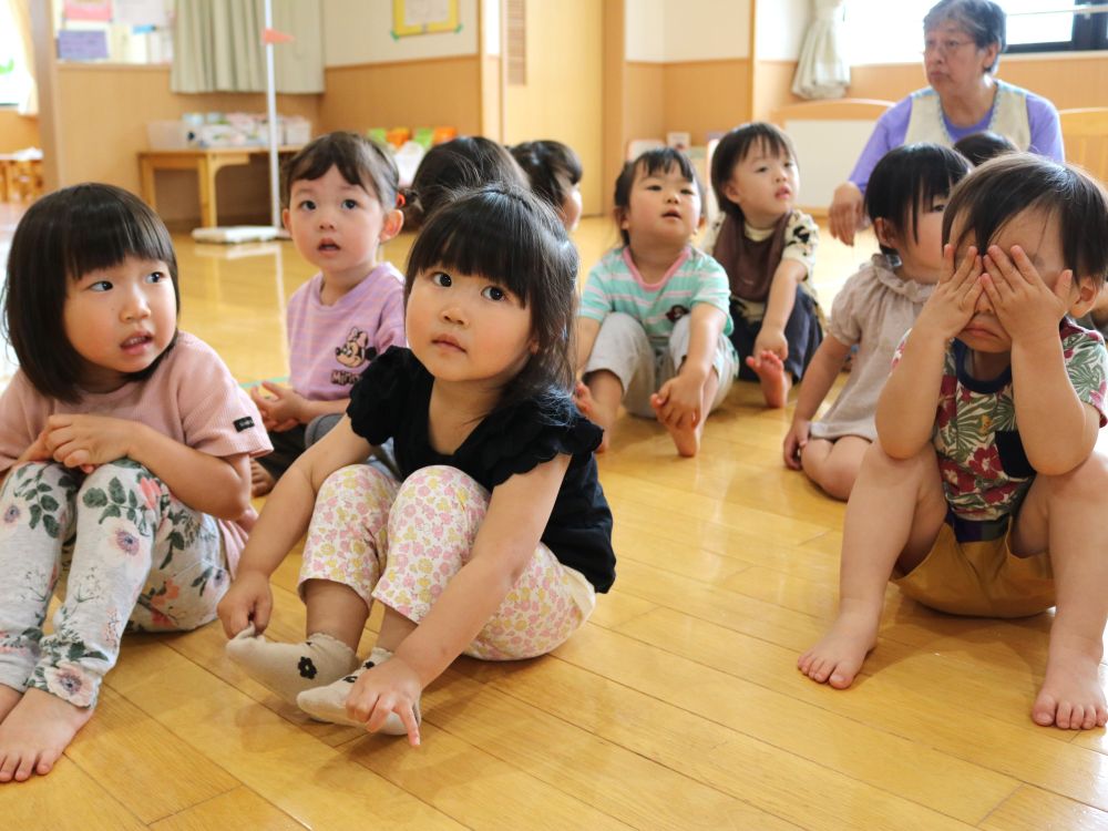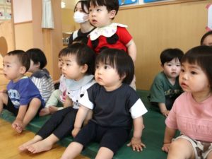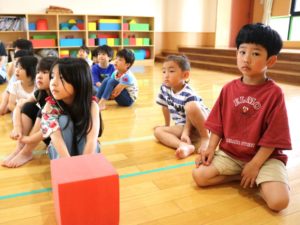 なんとなく空気を察したのか、みんなマットに座って園長先生の話をじっと聞いていました。