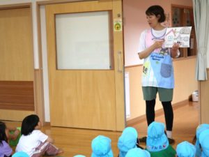 今日は、みんなが大好きな虫探しについて。「虫を捕まえたらおうちに返そうね」というお話でした。