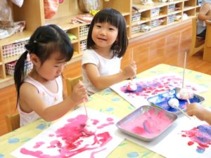 「ポンポン」するのは、うさぎさんにはちょっと難しく、「ぬりぬり」してしまう子も多かったのですが…