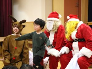 職員のパネルシアターのあと、いよいよサンタさんが登場!