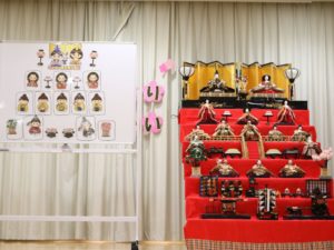 ステージ上の雛壇を隠して、みんなにお雛様を並べてもらいました。