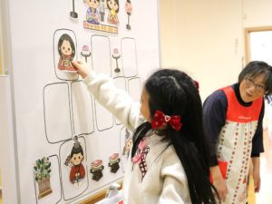 年長さんは、五人囃子を並べるという難問に挑戦!