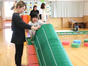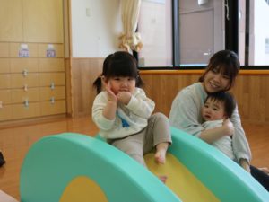 いつもの滑り台にマットを組み合わせたものですが、子どもたちはウキウキワクワク大喜び!✨