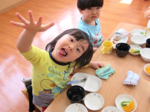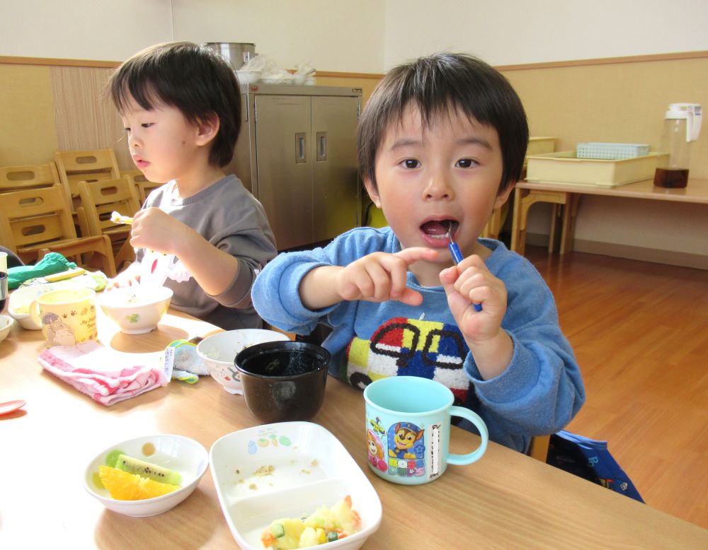 また、先生やお友だちと会話を楽しみながら食べられるようになってきます☺