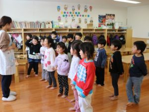 あと1ヶ月で年長さんになるという期待と自信がみなぎるすずらんさんは、おわかれ会の練習をしていました。