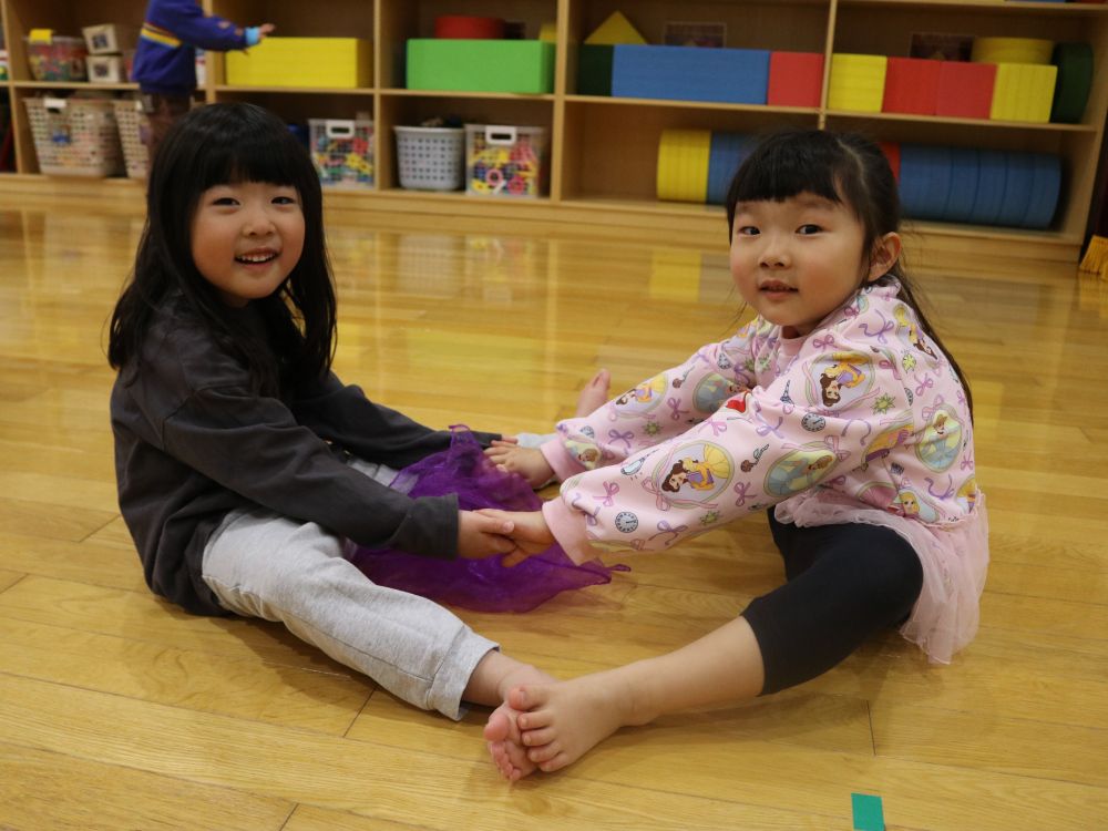 スカーフを使ったリトミックは、ただ楽しいだけでなく手や腕の運動、