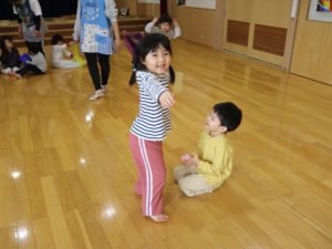 たんぽぽ組さんは、スカーフをお花に見立てて、