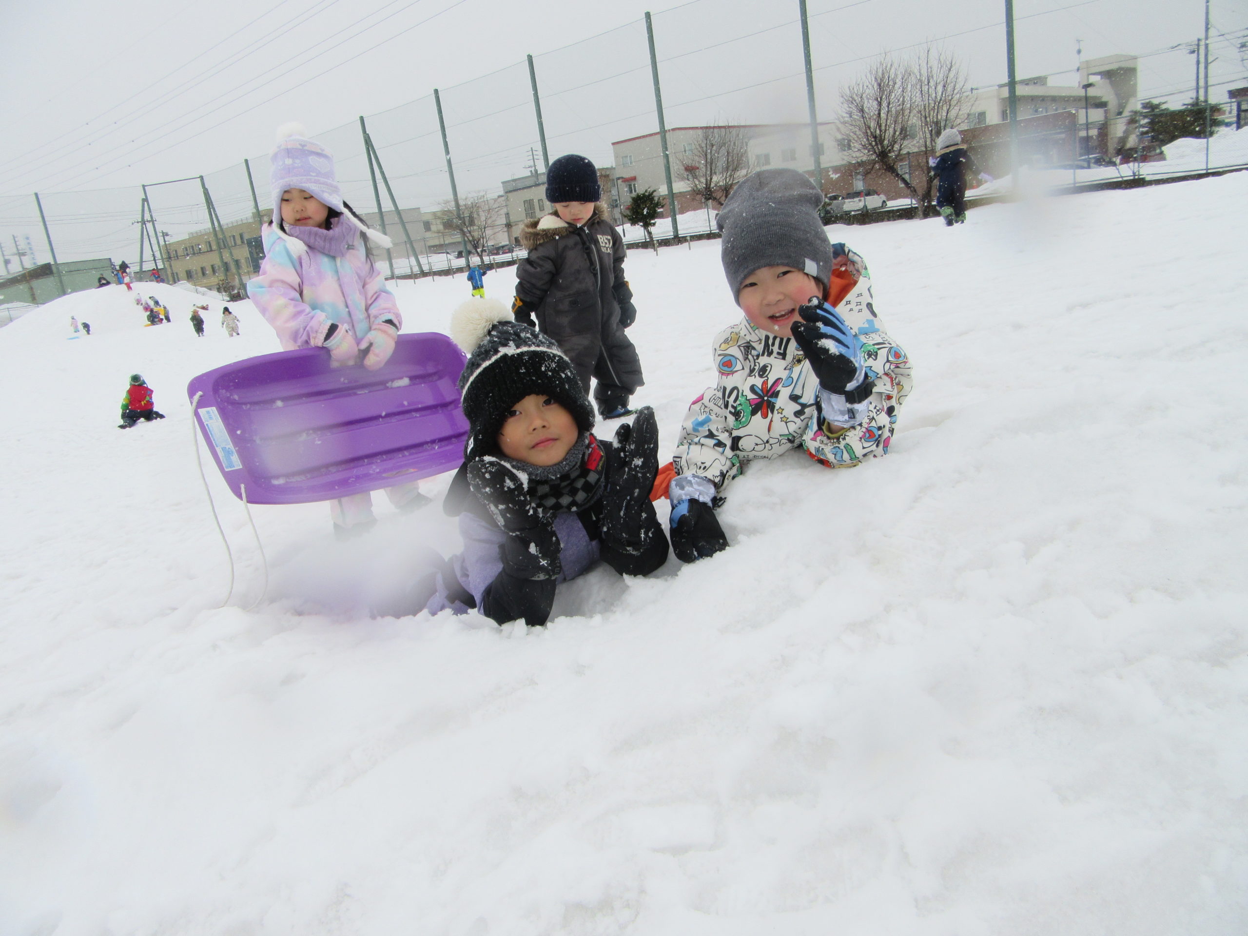 今年は雪も多く、そり滑りや雪遊びなど、