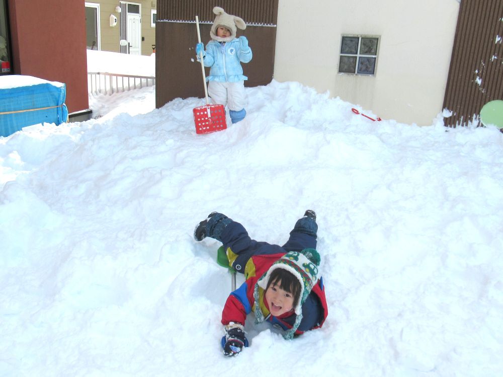 園庭の雪山で遊んでみたい方は、ぜひお越しください!