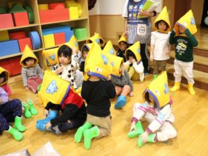 非常ベルが鳴ってビックリする子もいましたが、すぐに口を押さえて先生のお話を聞いていましたよ☺
