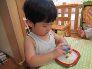 夏ならではの冷たい感触遊び!お家でもやってみてくださいね!