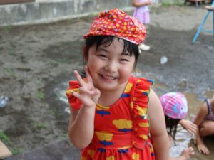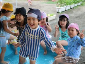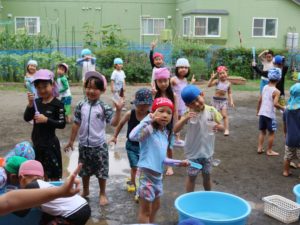 ひよこ組さん、うさぎ組さんは中庭で水遊び!