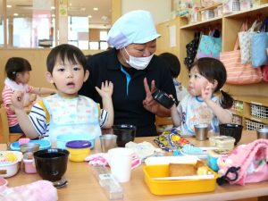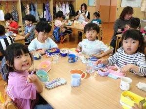 今日は全クラスお外に出て遊んでいたので、子どもたちはお腹ぺこぺこ☺