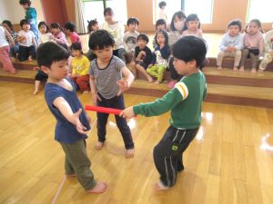ホールで走り回ると、汗だくになる子どもたち💦上着を脱いでシャツだけになる子も多かったです。