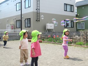 畑に咲いた色とりどりのチューリップを観察したり、シャボン玉で遊んだりしていました🌷