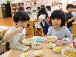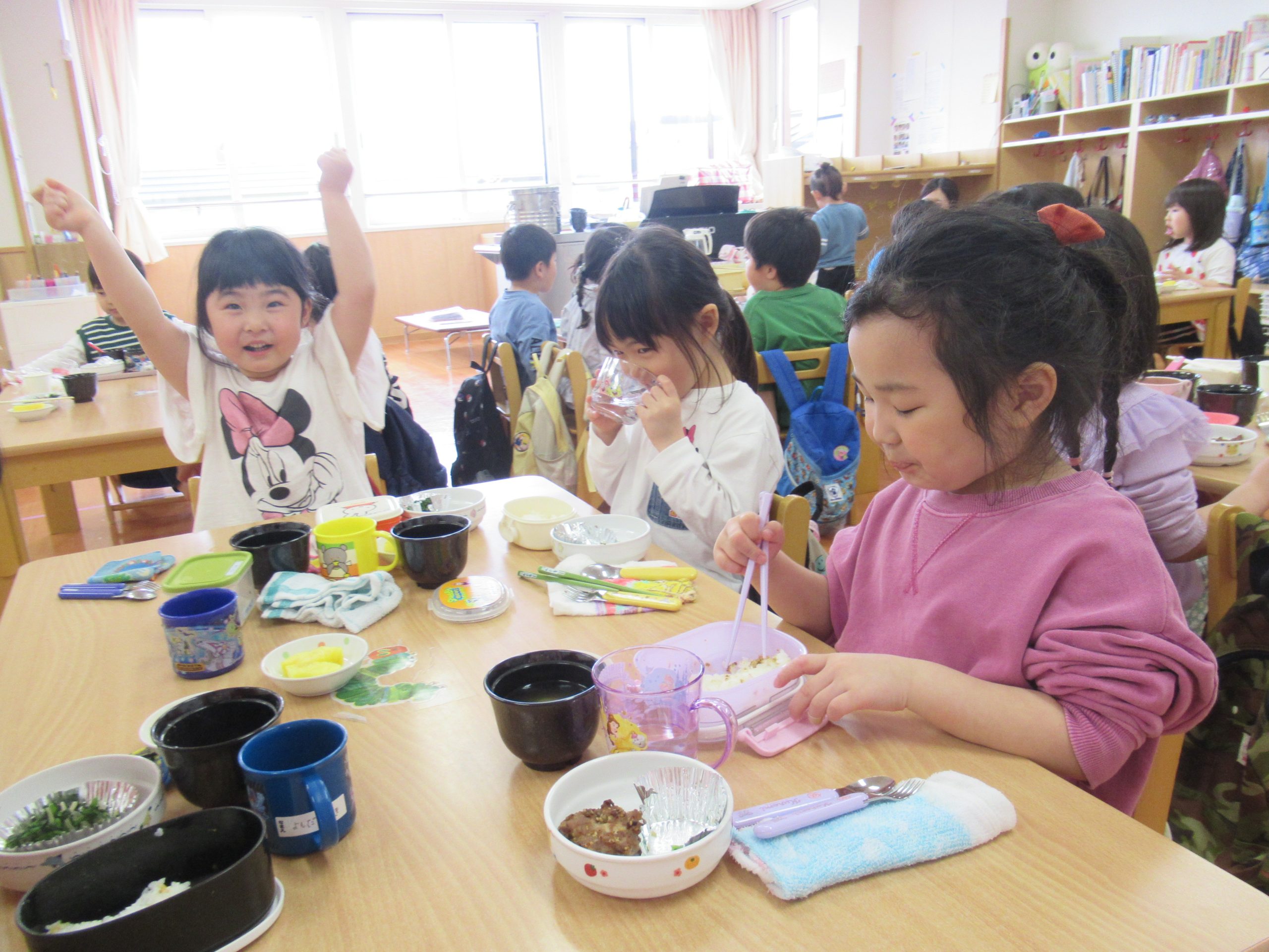 給食を食べながら段々と目をつぶってしまう子もいました(笑)。