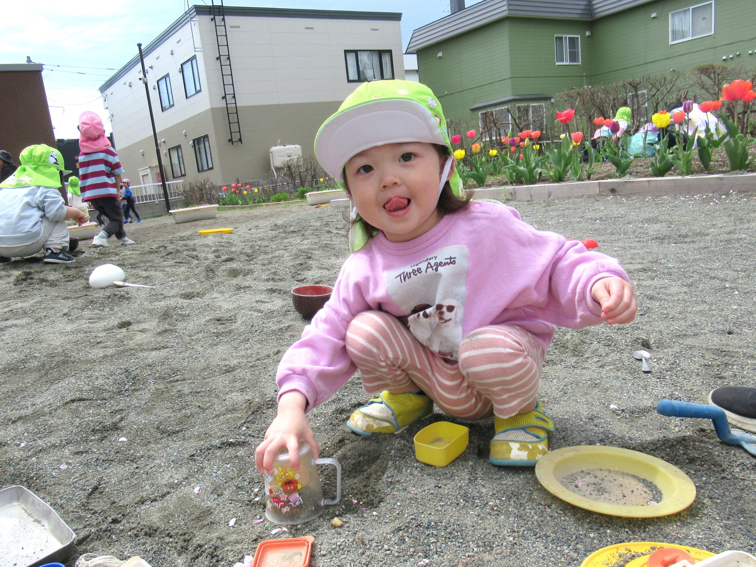 どうやら、朝からずっと園庭で遊んでいたようです☺