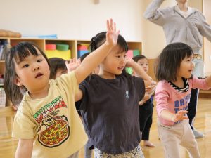 これは「自転車こぎ」の動きです🚲いつも「どんぐり」の曲のあとにこれがくるので、子どもたちはウキウキして待ってますよ!