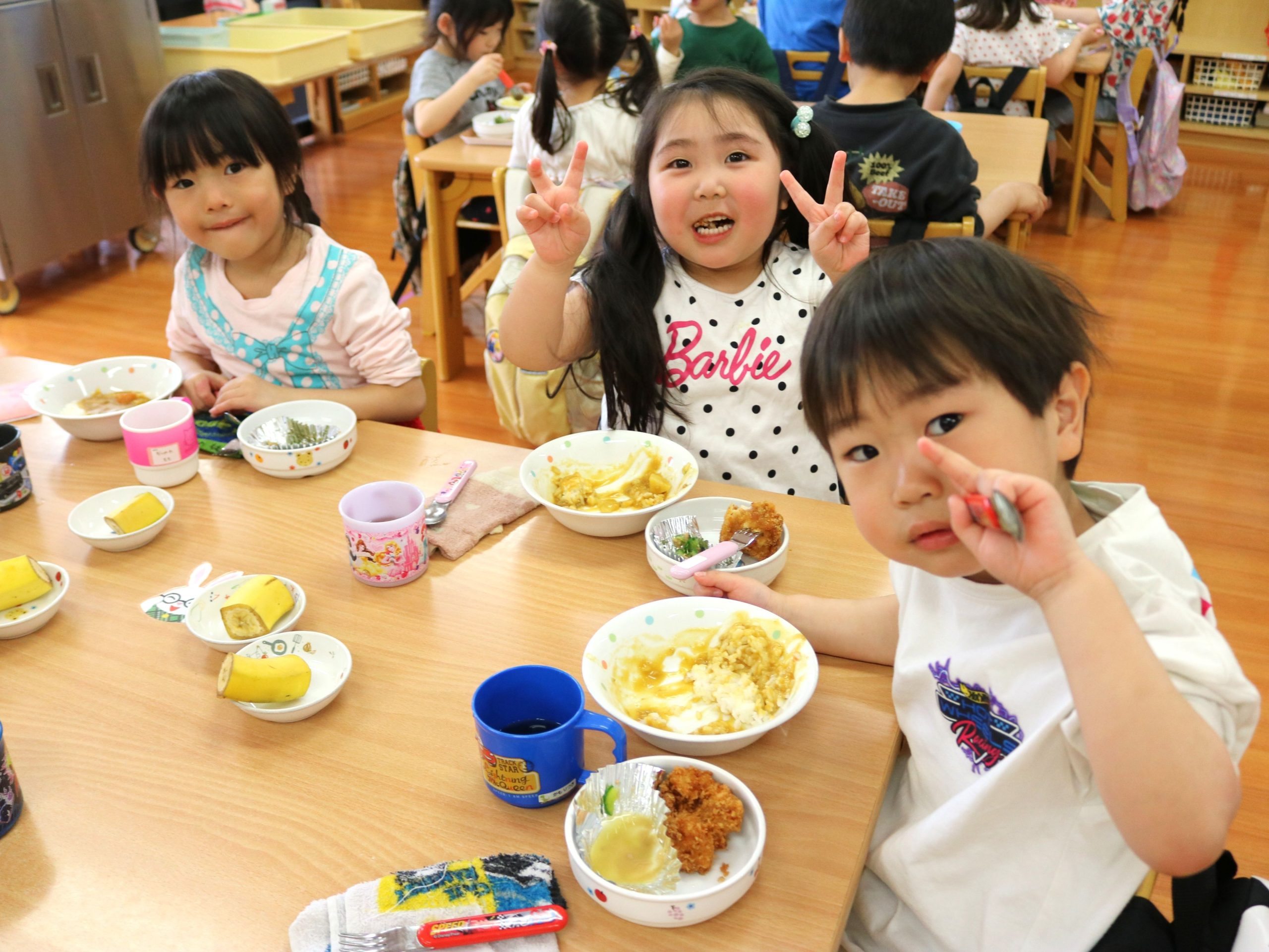 らいおん組では、「おいしすぎるー!」「カツをカレーにつけたらめっちゃおいしいよ!」と大好評でした☺
