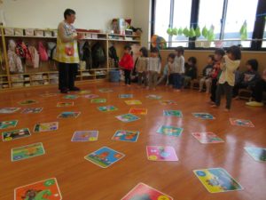 うさぎ組は、椅子取りゲームとアンパンマンのカルタ遊び。