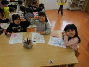 ぬり絵コーナーも人気で、お友だちとお話ししながら、