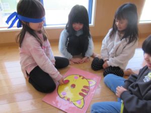 先生からは「進級・進学に向かってがんばろうね!」というお話と、お正月あそびの紹介がありました。