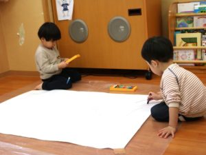 うさぎ組は大きな紙に絵を描いたり、粘土やパズルをしたりして自由に遊んでいました☺