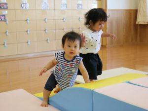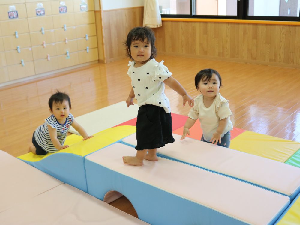 さて、ひよこ組はお部屋でアスレチック遊びです☺