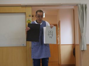 園長先生からは、「ケロくん」の絵を、白・グレー・黒の3色の画用紙