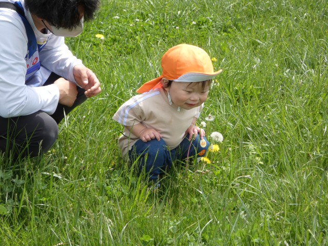 たんぽぽさんは河川敷まで歩いて行ってきました。ずいぶん遠くまで歩けるようになりましたね。雲を見て「パンダやコアラに見える」と言ったり、水たまりを見て「キラキラしてる」と言ったり、色々な気持ちが伝わってきますね。