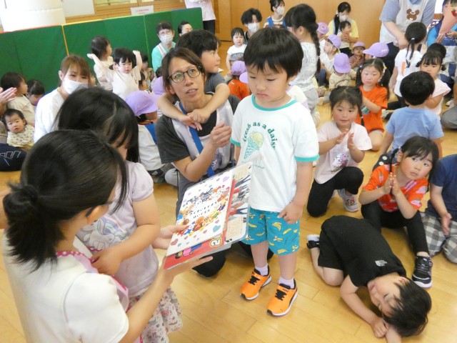 一年半ほど保育補助として子どもたちと遊んでくれた先生が、今日で最後となりました。「いっぱい遊んでくれてありがとう」とか「いつも優しく抱っこしてくれてありがとう」と、お礼の言葉を伝えてくれる子どもたちもいました。小さなつぼみさんもプレゼントを渡していましたよ。「また遊びに来てね」