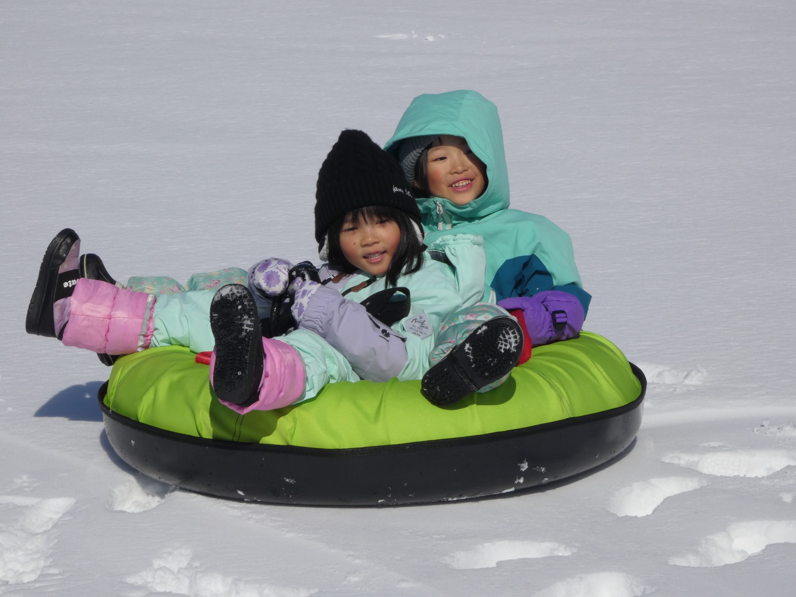 小学校の先生がチューブ滑り用のチューブを貸してくれたので、変わり番子にみんなで使わせてもらいましたよ。チューブはやっぱり良く滑りました。