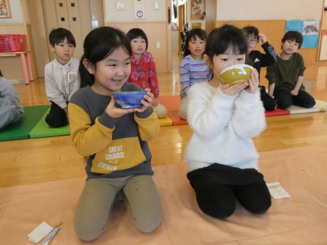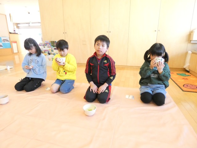 お茶が苦手というお友だちには量を少なくして、雰囲気だけ味わってもらっています。