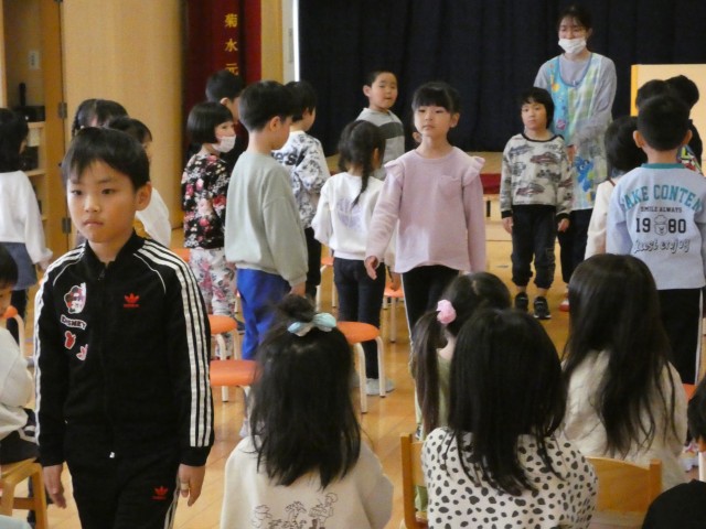 3月15日(土)は卒園式です。気付けばあと10日ほどしかありませんが、今日は初めて卒園式の練習を行いましたよ。入場の時は好きなポーズをします。どんなポーズにしようかとお友だちと色々と考えていましたよ。