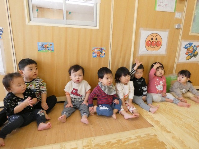 つぼみさんのお部屋に行ってみたら、出席を取っていました。お名前を呼ばれたら「は~い」と元気な声が聞こえてきましたよ。でも、それはお友だちの名前でした。誰の名前でも呼ばれたら元気にお返事をする姿に笑みがこぼれました。