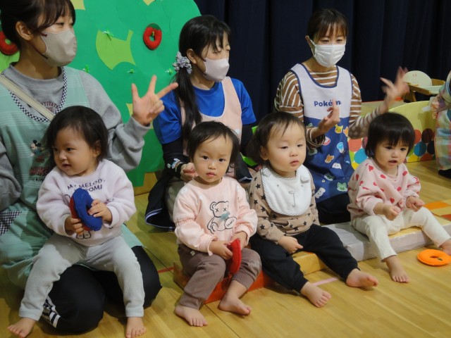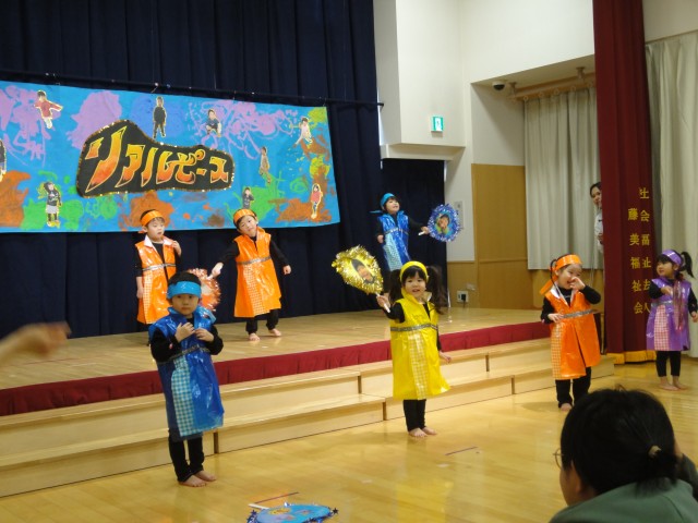 さて、お楽しみ会は、順調に時間通りに行うことができました。幕が開くと、いつもよりたくさんのお客さんの姿に驚き、固まったり泣いたりする姿も多かったです。それも思い出ですよね。来年はどうでしょう?と期待が持てますね。