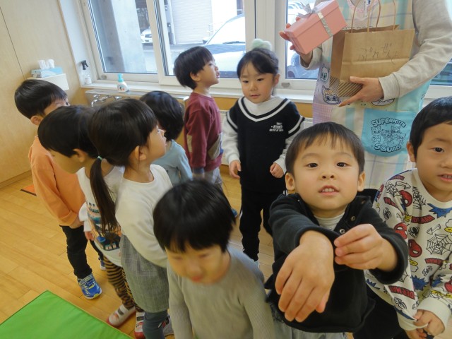 先週の土曜日のお楽しみ会では、たくさんの方々においでいただき、子どもたちの発表をご覧いただき、本当にありがとうございました。お楽しみ会を終え、今日から12月!ということで、新入園児さんが4名入園してきました。どのお子さんも泣くことなく、元気にお友だちと一緒に遊んでいましたよ。慣れるのも早いかもしれませんね。