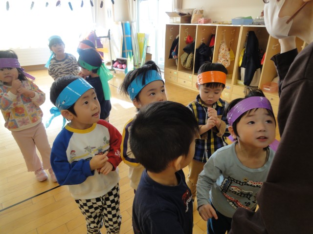 すみれさんは、まだお休みのお友だちが多かったですが、出席しているお友だちで忍者になって園内を見て回ったり、修行としてカラー積み木を渡るゲームをしたりしていました。お休みしているお友だち、早く元気になって下さいね。