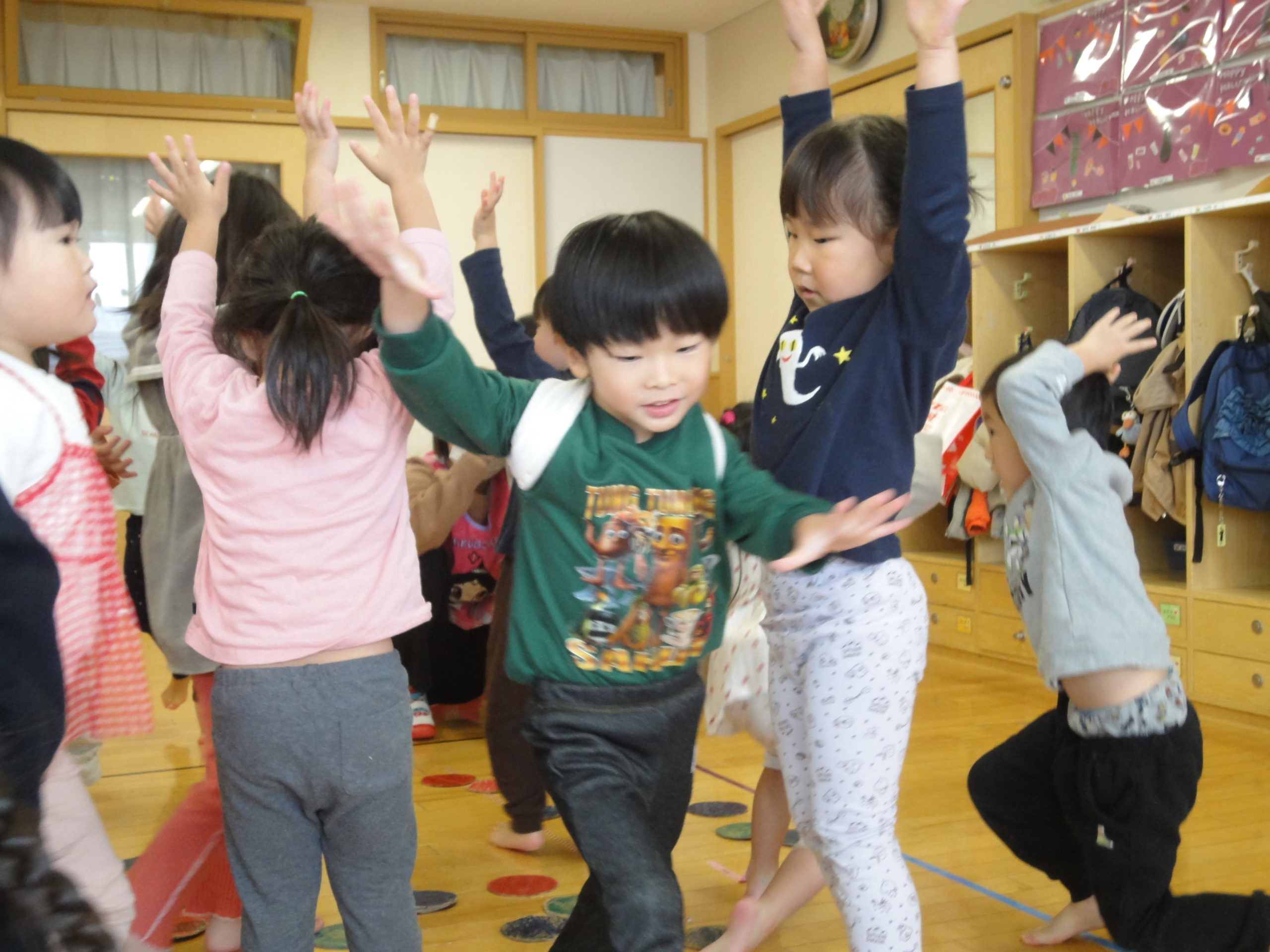 今日は、ちゅうりっぷさんのお部屋ですごいものを見ました。みんなでぬりえをしているなと思って見ていたら、突然4~5人の子どもたちが立ちあがって激しい踊りを踊ったのです。その振り付けがぴったりと合っていて、本当にびっくりしました。そして、少し踊った後、何事もなかったようにまたぬりえをしていました。これが世に言うフラッシュボブなんですね。初めてのフラッシュモブ体験、感動しました。