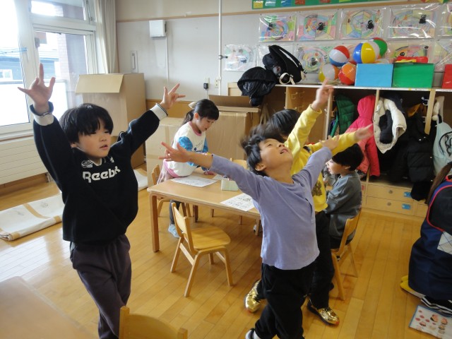 インフルエンザも蔓延してきている昨今ですが、まめに換気を行いながら、園では流行らないように気を付けていきますね。菊水小学校では学級閉鎖にもなっているとのことだったので、本当は今日、年長さんが小学校へ学習発表会を観覧に行く予定でしたが、うつる危険を考えて見合わせることにしました。また、みんなが元気な時に交流をしていきたいと思っています。